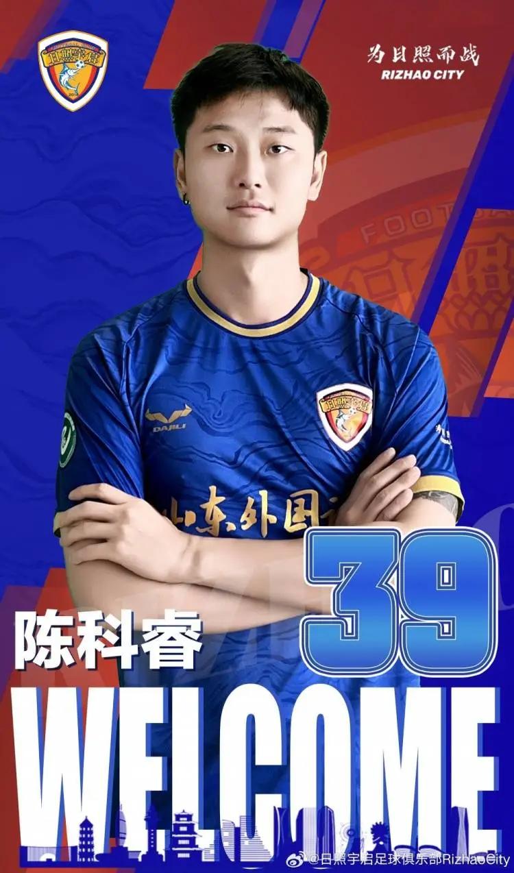 日照宇启官方公告:经与重庆铜梁龙足球俱乐部协商一致,即日起球员陈科睿转会加盟日照宇启足球俱乐部。在2024赛季剩余的比赛中,他将身披39号战袍,为日照而战!