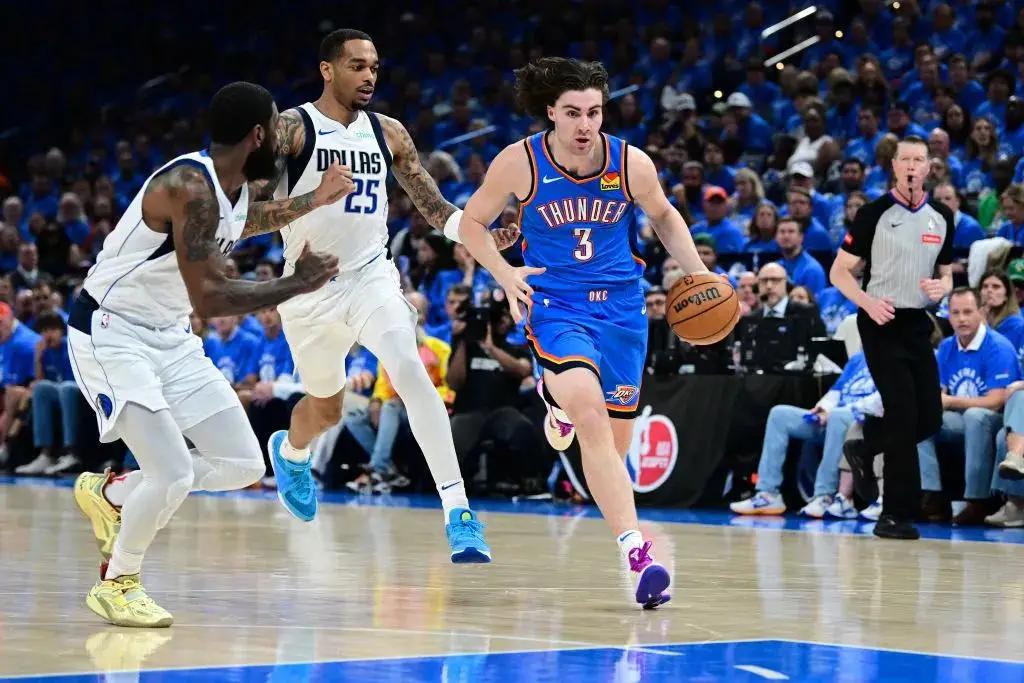 西部半决赛打独行侠,吉迪场均仅得到6.2分,三分球合计16中3!再说简单点:吉迪打不了高端局。本赛季常规赛,雷霆57胜25负,高居西部第一。雷霆的目标是总冠军,他们想打进西决和总决赛,在高端局显然指望不上吉迪。