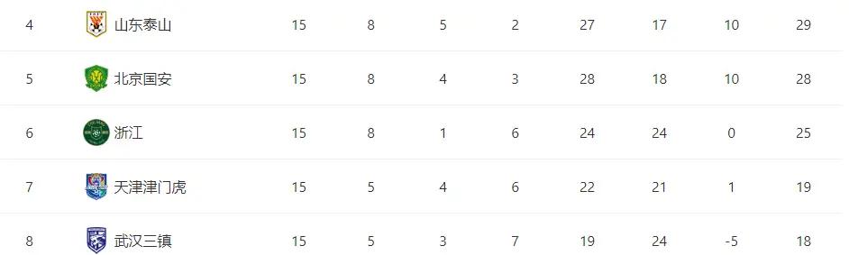 这样的话,半程中超战罢,天津津门虎5胜4平6负,积19分,仅仅 排在中超积分榜的第7位,考虑到已经被榜首上海海港甩开了20分的差距,意味着提前退出了本赛季中超争冠行列。