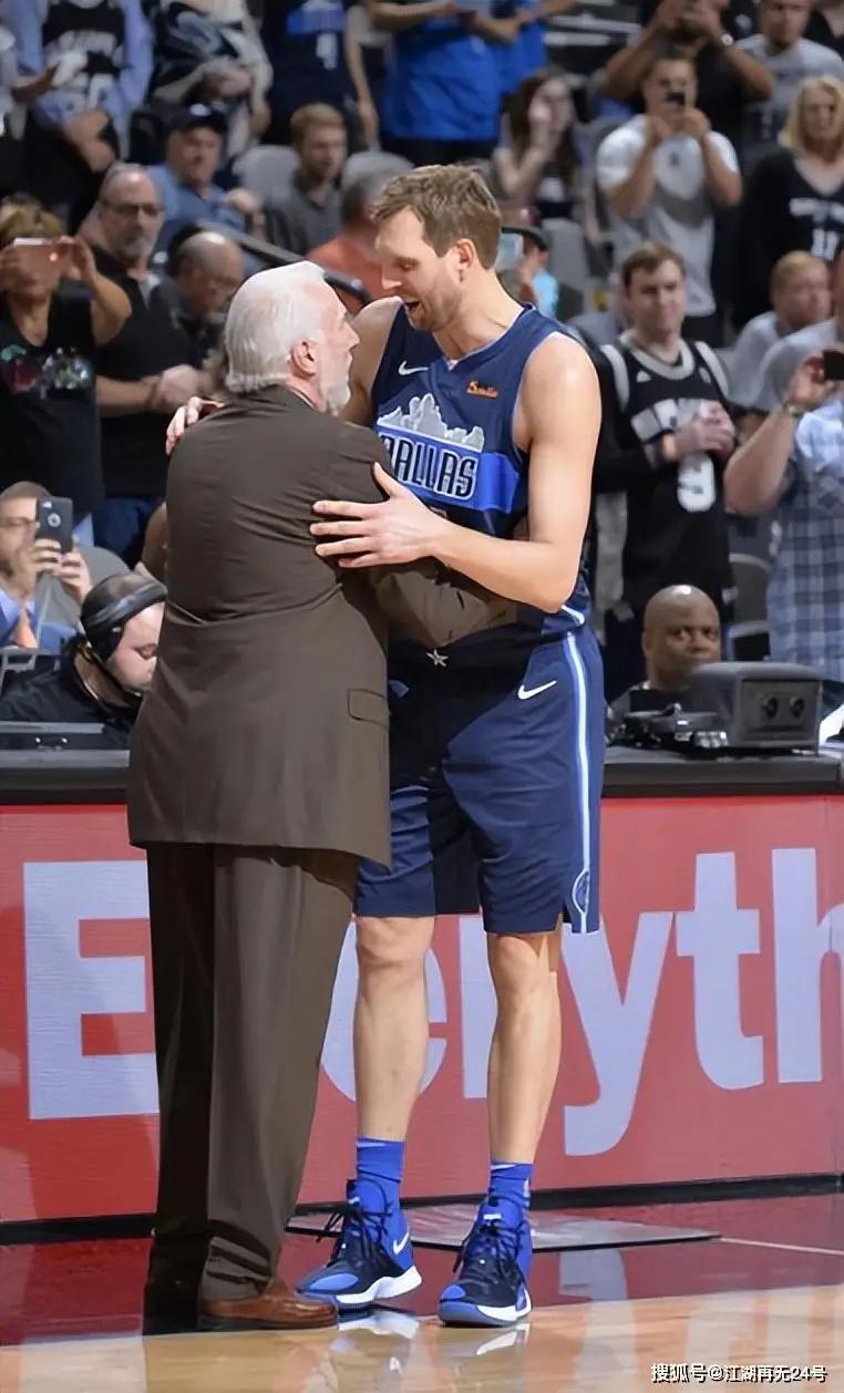 诺维茨基和邓肯一样,同样一人一城的他是NBA历史最伟大的外籍球员,也是达拉斯的图腾。天王职业生涯最后一场比赛恰好是面对老对手马刺。比赛最后时刻波波维奇甚至帮助这个又爱又恨的大个子得分上了20,同为投射型大前锋代表的阿尔德里奇也上前深深拥抱了前辈。谢幕战拿下20分10篮板的诺维茨基用实力赢得了队友和对手们的尊重。