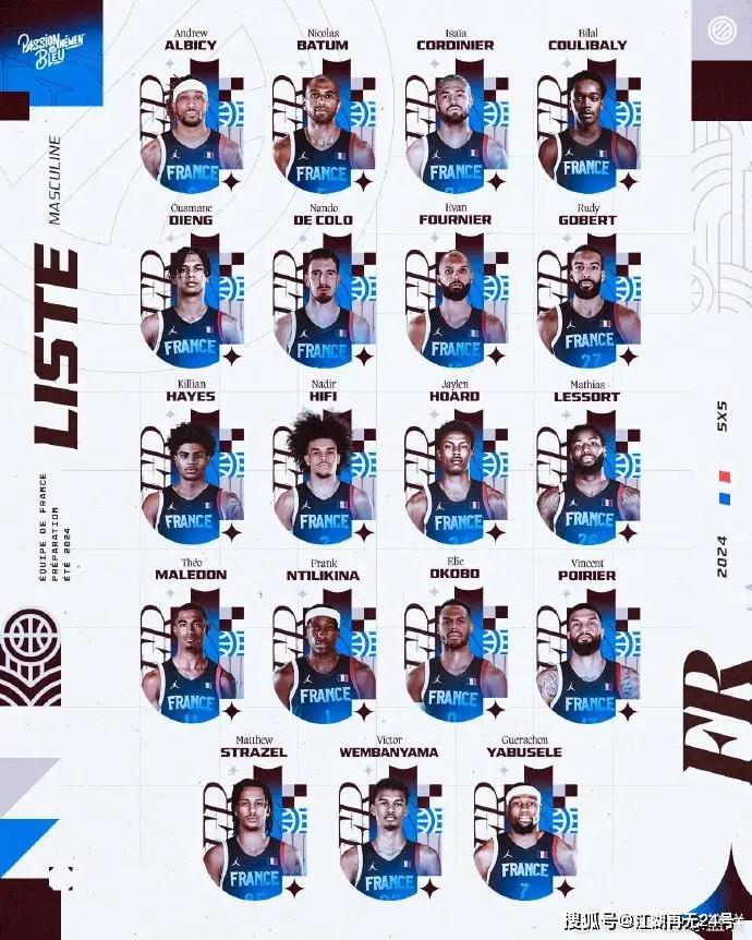 而作为东道主的法国队阵容也是星光熠熠,后卫线有在NBA打拼的尼利基纳和海耶斯、马勒东,还有老将德-科洛和富尼耶。锋线有飞速成长的库利巴利和吉昂,以及老大哥巴图姆。内线则是他们的强点,NBA的4届DPOY戈贝尔外加上赛季大放异彩的文班亚马,双塔将在巴黎上空设立法兰西禁飞区。拥有看不到上限的文班,法国也是有可能打出精彩比赛的。
