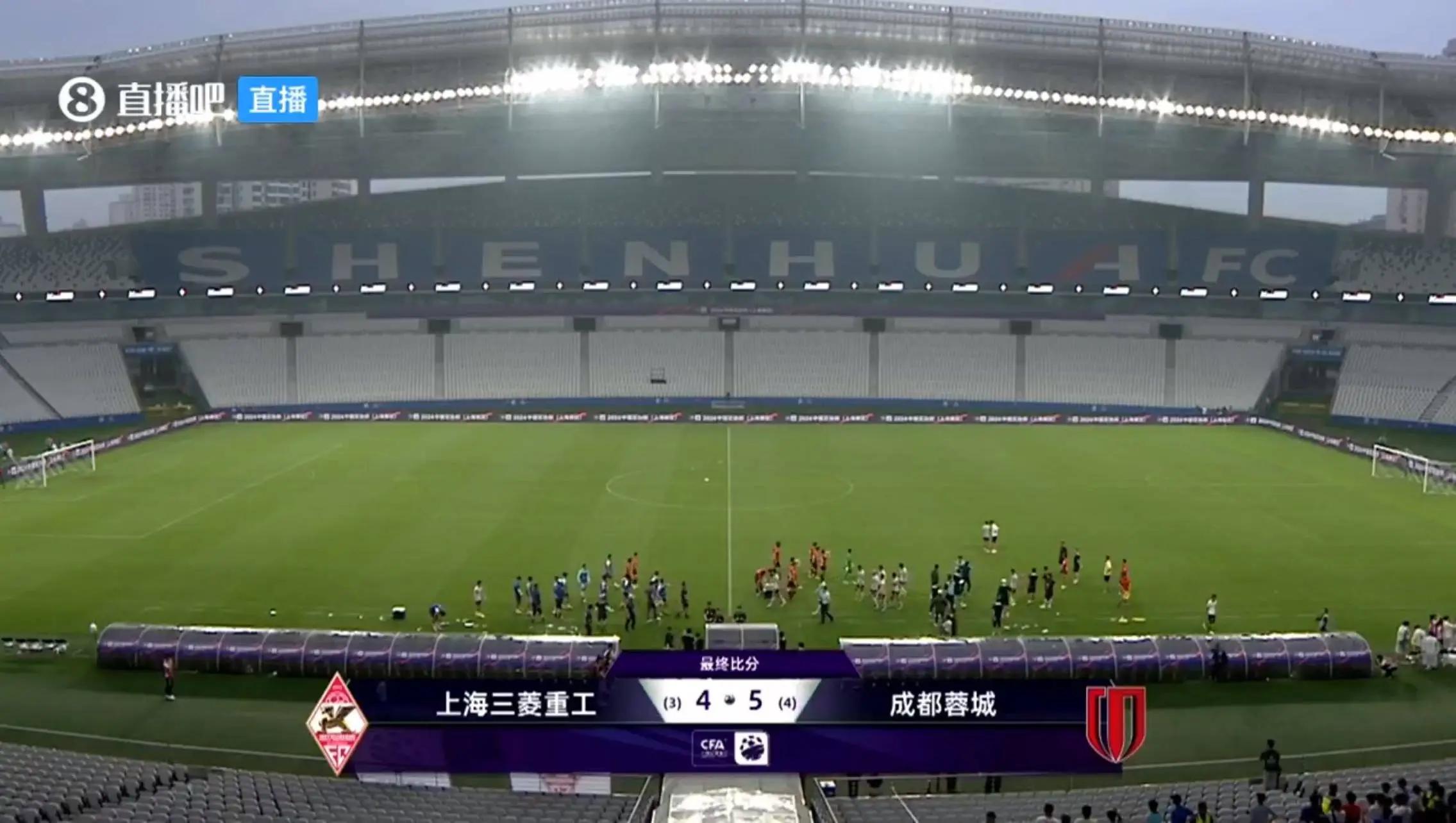 直播吧6月21日讯今天进行的足协杯第4轮,中超目前排名第三的成都蓉城与中冠上海长宁三菱重工队常规时间打平,点球大战蓉城涉险晋级。