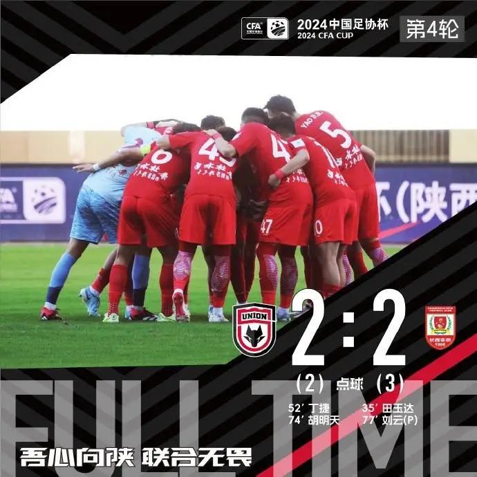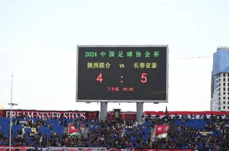 最终常规比赛时间结束,场上比分锁定2-2。根据比赛规则需进行点球决胜,杨瑞琦、李锐主罚破门,糜昊伦、丁捷、王维朴罚失点球。全场比赛结束,陕西联合总比分4-5长春亚泰(点球2-3),陕西联合止步2024中国足协杯第四轮。