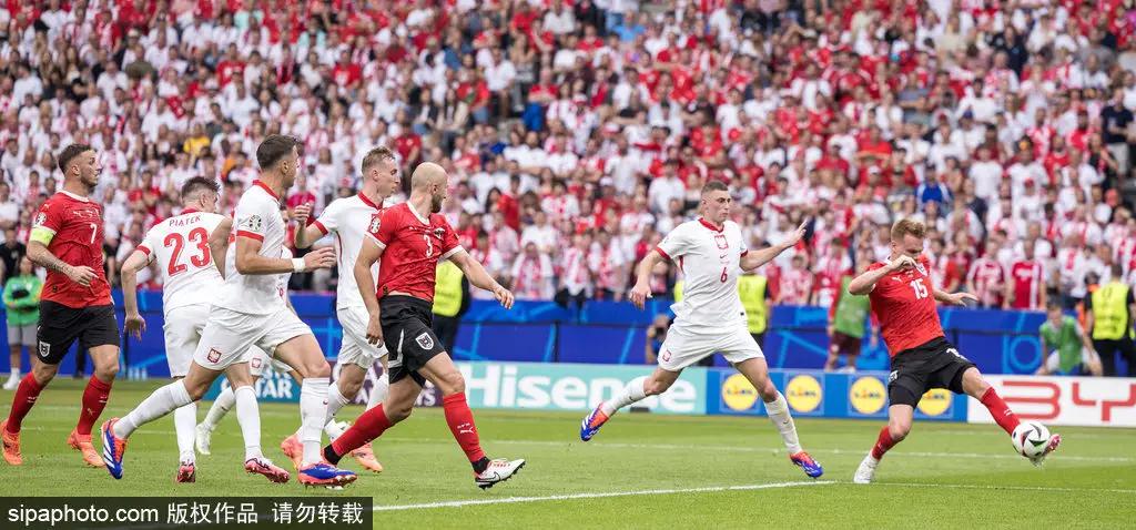 北京时间6月21日凌晨0时,2024欧洲杯小组赛D组第二轮率先展开首场争夺,波兰对阵奥地利。上半时,特劳纳头球破门为奥地利首开记录,皮亚特克补射破门帮助波兰扳平比分;下半时,鲍姆加特纳破门再度为奥地利取得领先优势,萨比策造点、阿瑙托维奇点射破门帮助奥地利锁定胜局。全场比赛结束,奥地利3-1击败波兰。