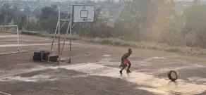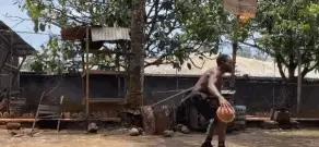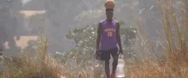 在这样的环境里,肯尼迪还是坚持打球,保持训练,他的日常是头顶篮球,拎着两桶水去球场。