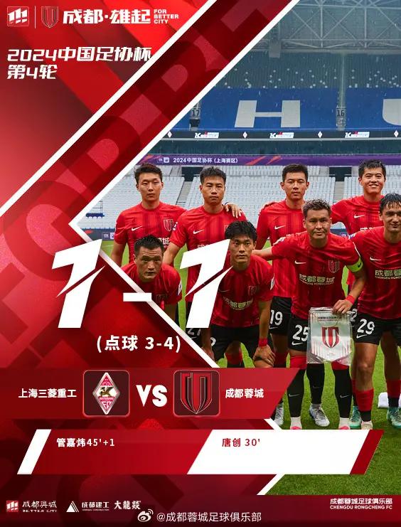 上海长宁三菱重工1-1(点球3-4)成都蓉城