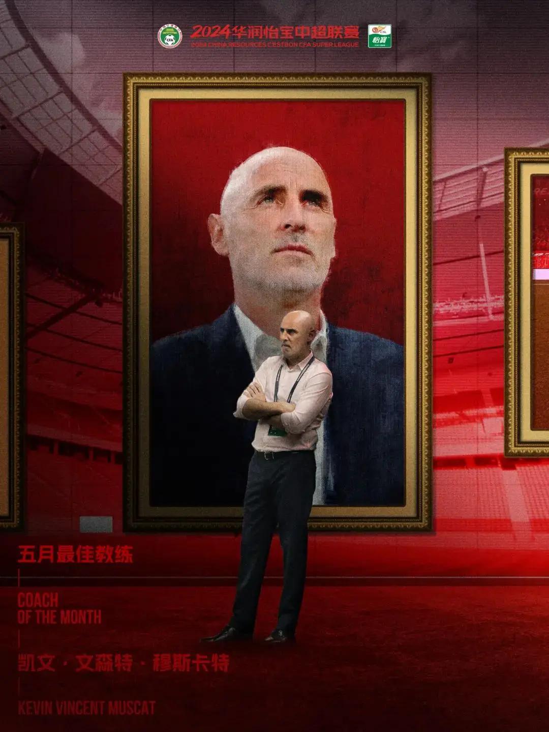 在5月份最佳教练评选中,穆斯卡特获得了媒体评委会投票环节中的16张第一顺位选票,最终以93分的绝对优势当选为中超5月最佳教练。