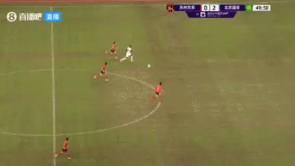 第34分钟,阿德本罗挑球突入禁区,延济民解围不远,苏州门将扑出阿德本罗射门后,林良铭补射扩大比分,国安2-0。↓