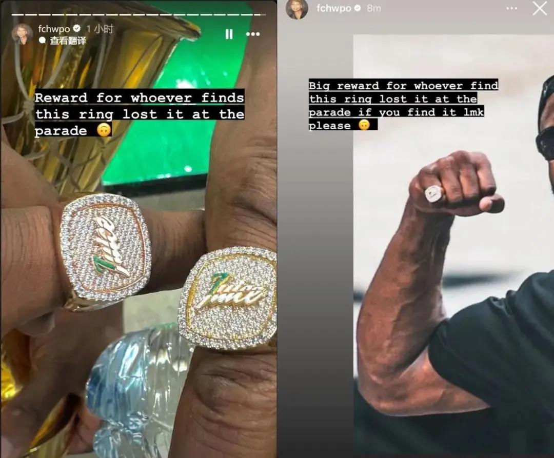 北京时间6月23日上午,新科FMVP杰伦-布朗更新ins,他这样写道:“有人捡到这个戒指吗?我在冠军游行上搞丢了!如果谁能找到,我将重金感谢。”虽然这枚戒指也有凯尔特人的元素,但并不是本赛季的总冠军戒指,而是他自己品牌的戒指。