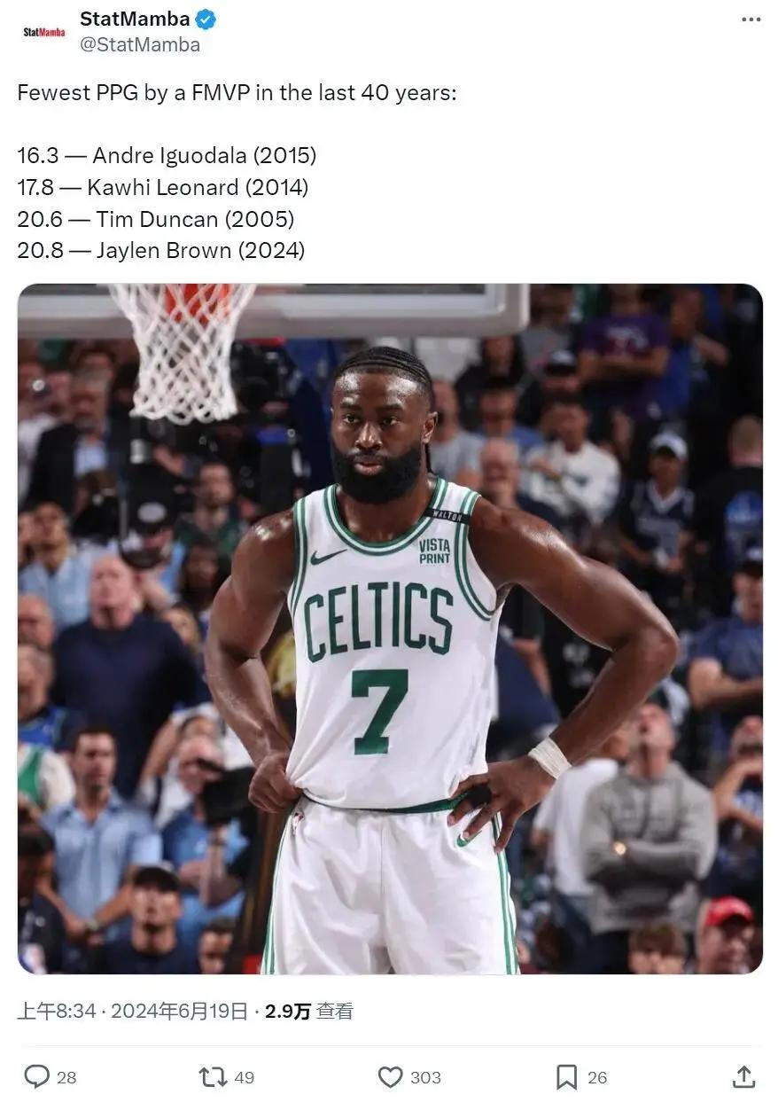 最后一问:布朗这个总决赛MVP,你觉得是不是实至名归?