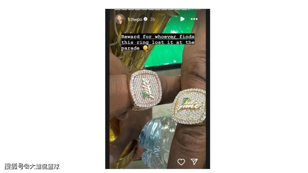至于小凯文波特的前女友为何能在这次夺冠游行的车上,相信大家都应该能猜到具体的原因。不过,杰伦布朗在Instagram上发布了一条重金酬谢的寻物启事,“找到这枚戒指的人将得到奖励,这枚戒指是在游行中丢失的”
