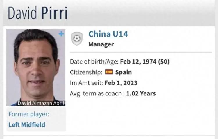 直播吧6月23日讯 根据足协公布的新一期U14国少集训通知,本支队伍的教练组组长为西班牙籍教练大卫-皮里,此前他曾经在申花俱乐部任教。