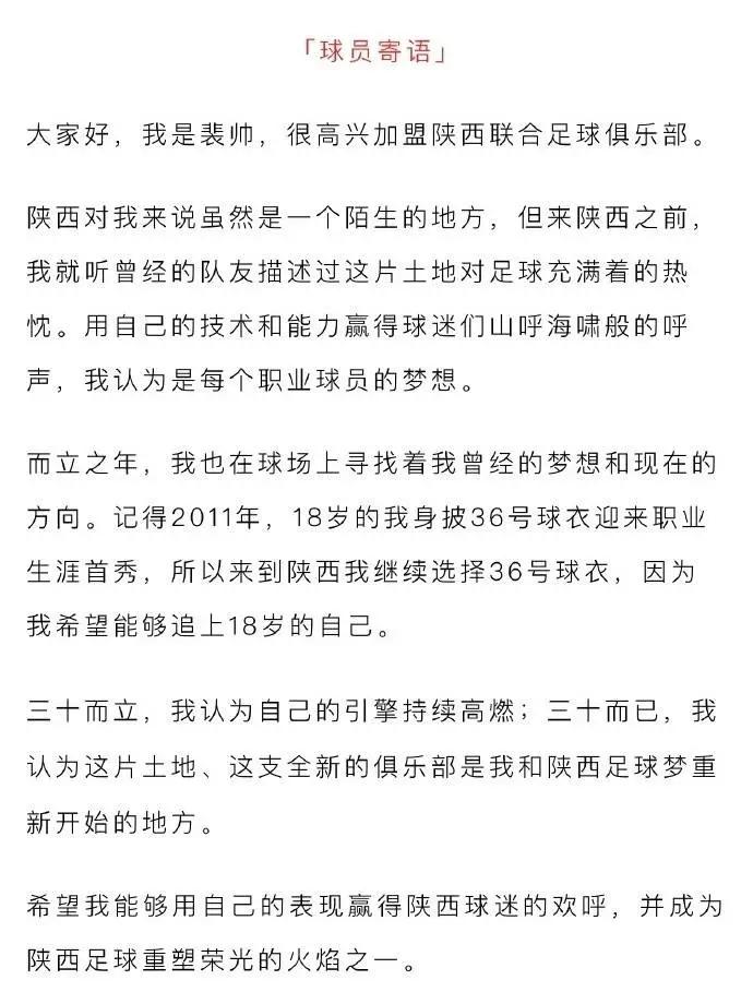 经与球员本人友好协商并达成一致,球员裴帅(会员号:20631)将加盟陕西联合足球俱乐部,合同期至赛季结束。