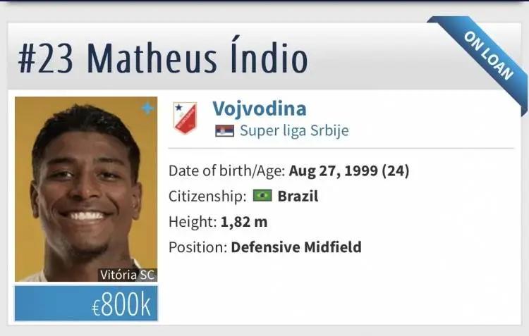 直播吧6月25日讯 据记者孙飞报道,中超新军青岛西海岸的新外援将于今天16时15分飞抵青岛胶东国际机场。种种迹象表明,这名新外援是现年24岁的巴西中场马特乌斯-因迪奥。