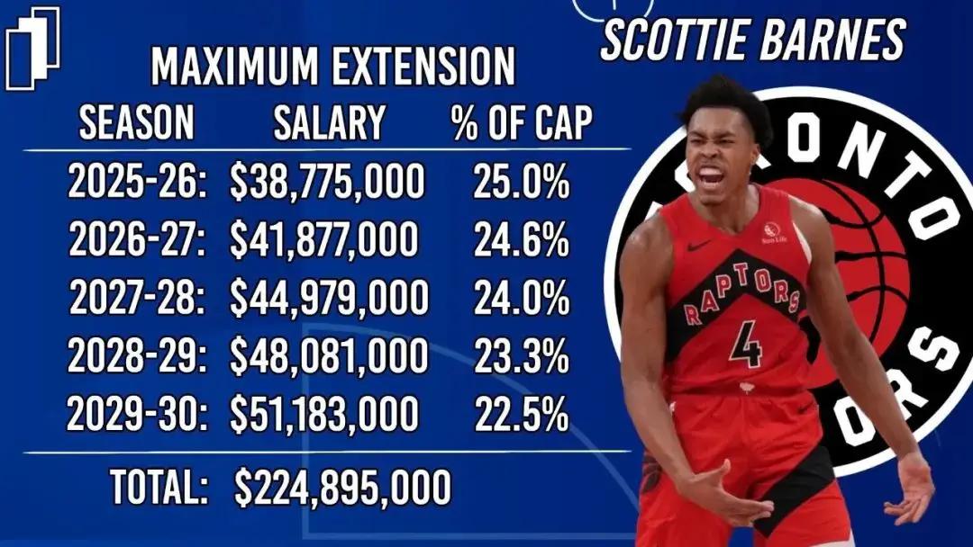 巴恩斯这份顶薪,如果触发,每年工资大致如下