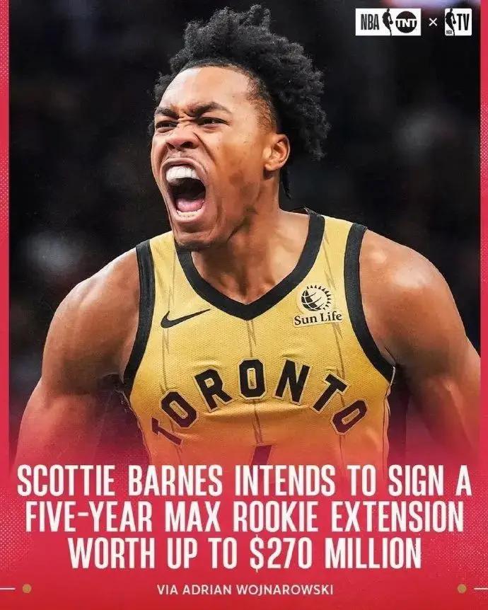 猛龙计划给巴恩斯一份新秀预约顶薪合同,5年2.7亿。