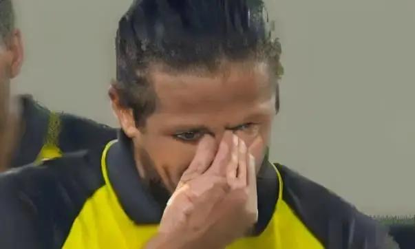 洛国富在比赛第67分钟助攻队友艾克森得分,但这一进球因越位被取消。而在比赛第93分钟,他在后场拼抢时将鲁能国脚金敬道绊倒,并被VAR裁定为严重犯规,最终被主裁判王竞直接红牌罚下场。这一突如其来的变故让洛国富从喜悦瞬间陷入悲伤,他在场边无法抑制泪水,多次擦拭眼睛,显露出他对比赛结果的深深悔恨和对自己表现的不满。