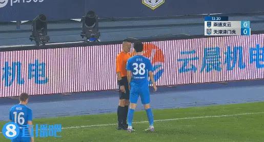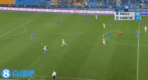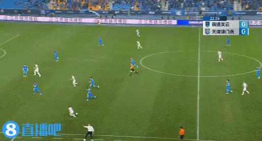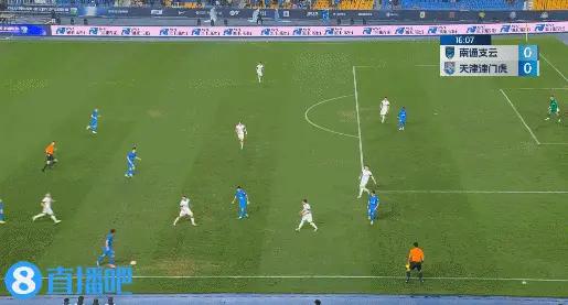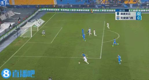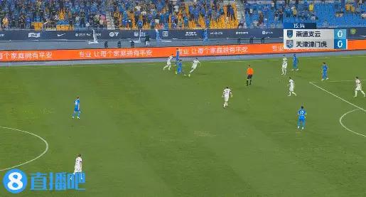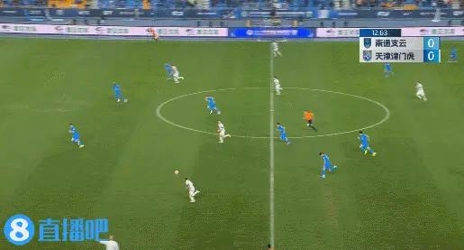 第13分钟,津门虎反击落阵地战,苏缘杰下底传中被薛庆浩摘下。↓