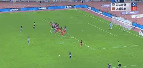 第33分钟,武汉三镇获得前场任意球,恩里克人群中冲出,头球攻门,错失得分良机。