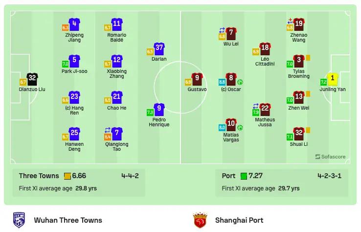 武汉三镇替补:38-陈星、15-肖开提江、18-刘奕鸣、28-王毅、40-吾米提江、43-张涛、10-罗森文、16-张辉、33-何统帅、42-闵紫曦、19-刘越。