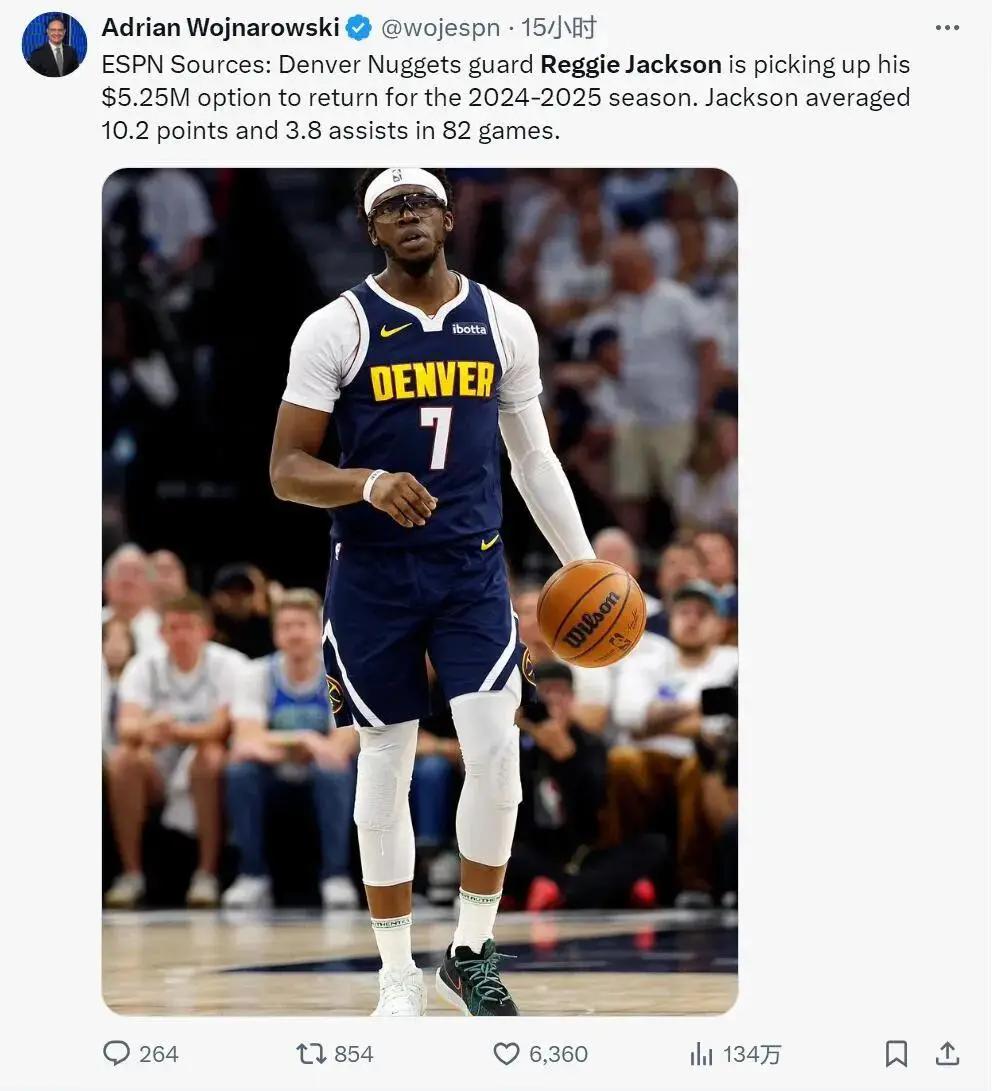 北京时间6月25日,掘金后卫雷吉-杰克逊,宣布执行下赛季525万美元球员选项,继续为掘金效力。雷吉确实存在很多问题,但这个价格已经算是很便宜了。如果雷吉离队的话,掘金花同样的钱,几乎不可能签来比他更好的后卫。