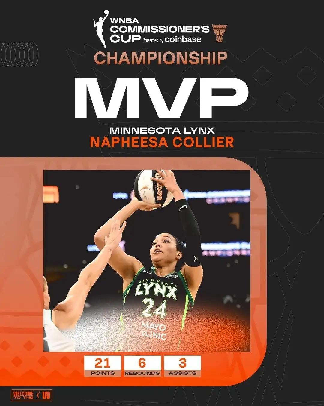 山猫队方面,卡尔顿的表现同样抢眼,她贡献了23分4篮板5助攻3抢断的全面数据。而科利尔更是发挥出色,她不仅贡献了21分6篮板3助攻的数据,还在关键时刻屡次抢断成功,为球队的胜利立下了汗马功劳。最终,科利尔凭借出色的表现,成功夺得了本届总裁杯冠军赛的MVP奖杯。