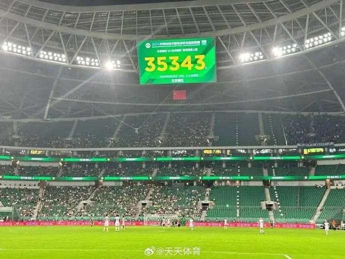 直播吧6月26日讯 今晚进行的中超第16轮比赛,北京国安主场迎战沧州雄狮,由于恰逢工作日加之对手实力不强,35343的现场观众人数,创造了本赛季国安主场上座人数的新低。