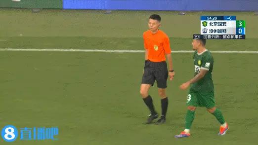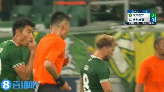 直播吧06月26日讯 国安vs沧州补时阶段,王子铭单刀在郑凯木防守下倒地,裁判第一时间未吹罚,随后VAR介入,主裁判去场边看回放后确认,郑凯木犯规,国安获得点球。