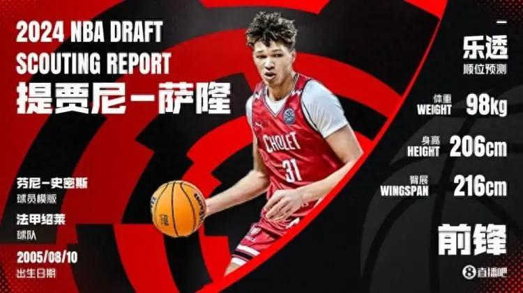 据选秀专家Krysten Peek报道,联盟消息人士透露,黄蜂可能会在第6顺位选择法国前锋提贾尼-萨隆。