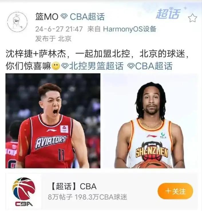 据京城媒体人篮MO透露,北控男篮与深圳马可波罗已经谈妥了一笔足以震撼CBA联盟的3换2交易,北控男篮送出邹雨宸+费尔德+大量现金,深圳马可波罗内线沈梓捷+萨林杰新赛季将加盟北控男篮。