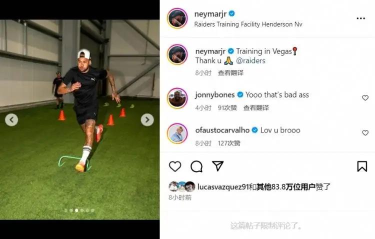 直播吧6月28日讯内马尔连续更新社媒,晒出自己在拉斯维加斯的训练照,其中包括自己造访当地美式橄榄球俱乐部拉斯维加斯突袭者的照片。