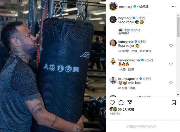 内马尔还为自己用沙袋训练的照片配文:沙包装满??