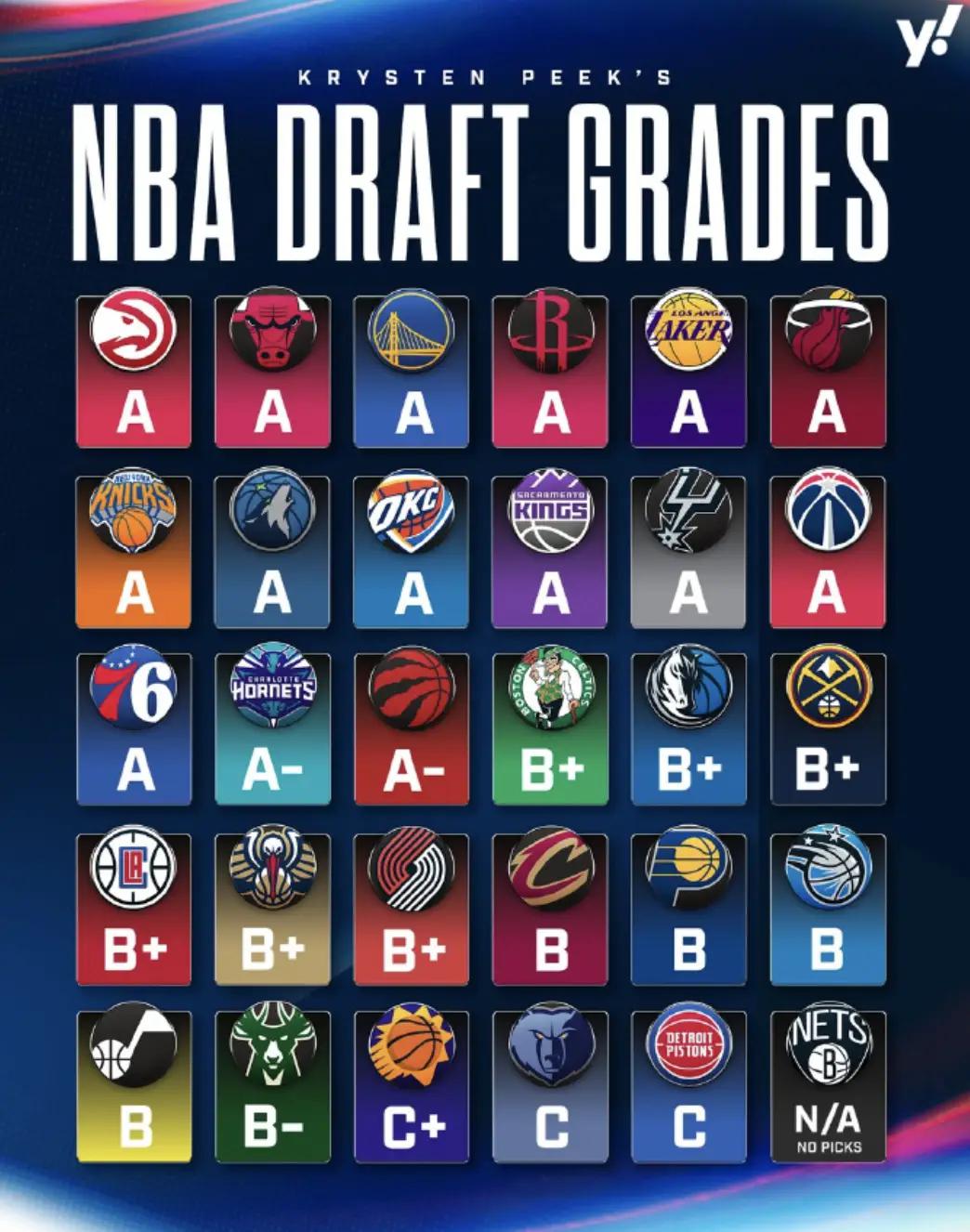 2024年的选秀大会已经落下帷幕,雅虎体育给湖人首轮和次轮的选秀操作打出评分:A。