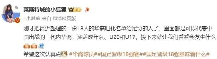 根据《足球报》的消息,在受到印尼队的启发之后,为了提升国足在18强赛的竞争力,足协已经正式启动归化进程。据博主的报道,一份18人的华裔归化名单已经在足协备案,这里面的球员都是可以代表中国队出战的,其中涵盖了国足、国奥、国青三支国字号球队。而在另一条战线,非血缘归化也取得进展,届时将有3位球员赶上18强赛。