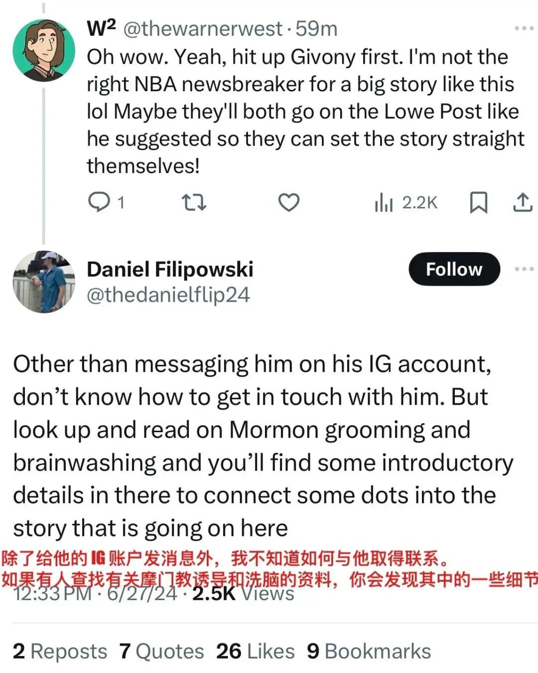 现在网络上盛传,凯尔-菲利波夫斯基已经被摩门教忠实信徒女友洗脑,目前已经与家人切断联系。