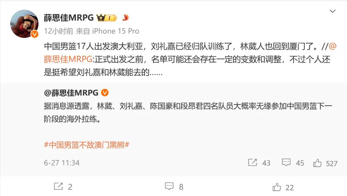 与澳门黑熊队的第二场比赛,包括林葳、赵维伦、陈国豪、段昂君这些年轻球员均未进入到大名单,而球队不仅在那场比赛输球,赛后更是曝出陈国豪、林葳、刘礼嘉这些年轻球员将会离队的消息。而稍早前有媒体人透露,包括林葳、陈国豪、段昂君、刘礼嘉等四名球员均离开球队,不会随队前往澳大利亚,开展下阶段的集训。