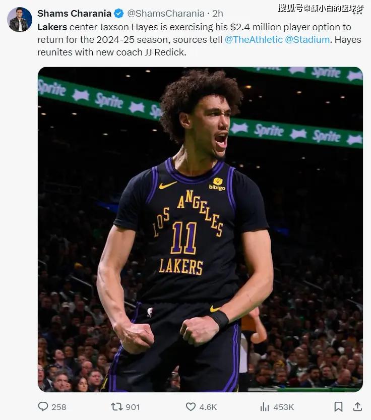 湖人今年夏天有三个首轮签可以交易,结果用两个交易穆雷都不肯,佩林卡实锤抠到家。他说服了海斯执行下赛季240万的球员选项重返LAL,海斯将与雷迪克再度合作。