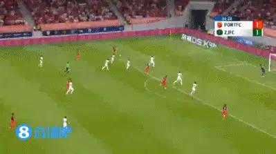 第35分钟,傅欢传中,巴尔加斯得球后踉踉跄跄近距离打门被赵博扑出,海港错失机会。看到巴尔加斯打门被扑后,傅欢捂脸跪地。