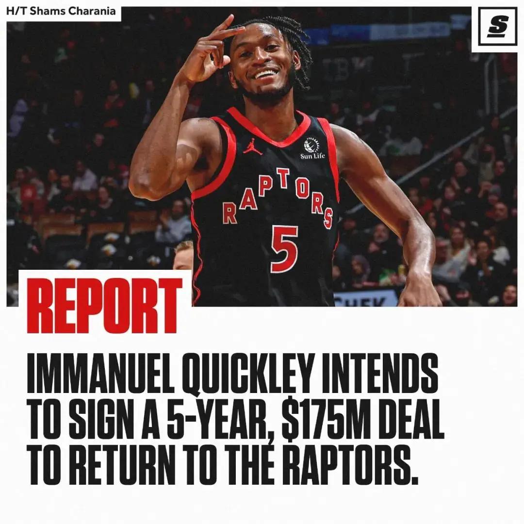 今年休赛期,最阔气的球队是哪支?猛龙!他们先是5年2.7亿美元续约建队基石巴恩斯,如今又以5年1.75亿美元续约伊曼纽尔-奎克利!你没看错,连奎克利都能拿到1.75亿的大合同,均薪3500万美元,谁敢说猛龙不够大方?