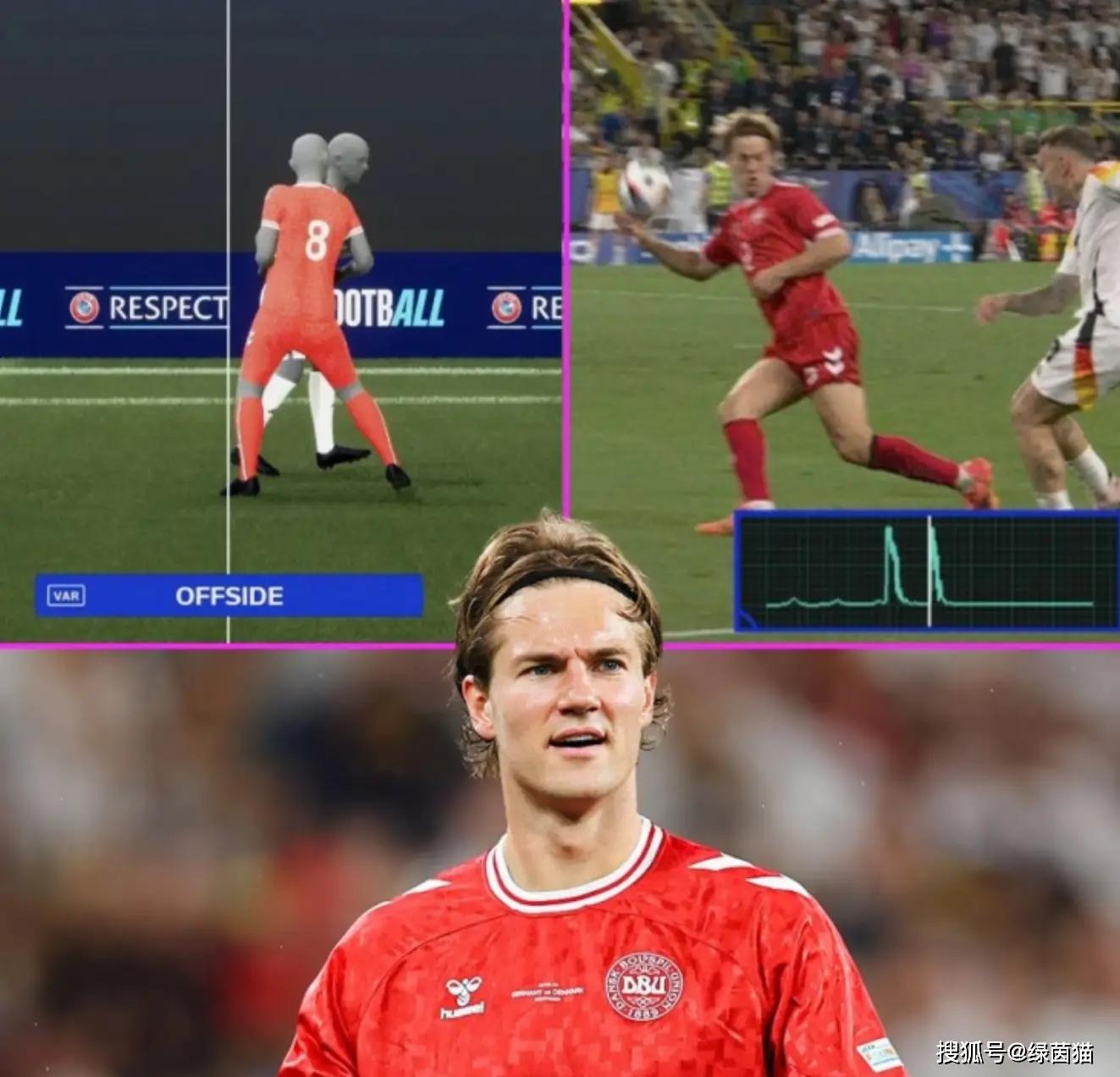 德国队2-0淘汰丹麦的比赛一波三折,先是雷暴天气抢镜,一度导致比赛中断,现场雷声滚滚,所以裁判中断了比赛。下半场裁判的判罚引发争议,丹麦队通过任意球发动进攻,安德森禁区破门得分,他疯狂庆祝,不过裁判听耳机,很快示意越位在先,但越位毫厘之差,被不少球迷抨击。转过头来,进球被吹的安德森禁区手球,送上点球,德国队打破僵局,随后穆西亚拉扩大领先优势,德国队拿下胜利。