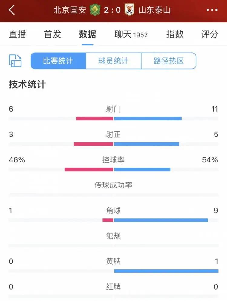 直播吧6月30日讯 今晚进行的中超第17轮比赛,主场作战的国安半场2-0领先泰山。上半场,场面不占优的国安展示了超高的效率,打入了两个进球。