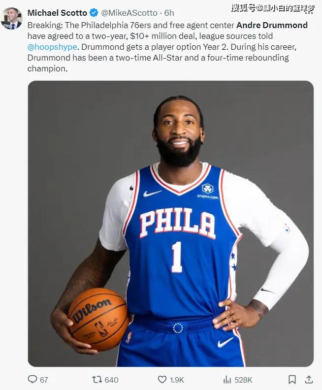 早些时候费城还以两年超过1000万的价格签下了安德烈-德拉蒙德,费城管理层希望为恩比德找寻一个良好的五号位替补,以此减轻恩比德的负担,让恩比德能在进入季后赛时保持健康。