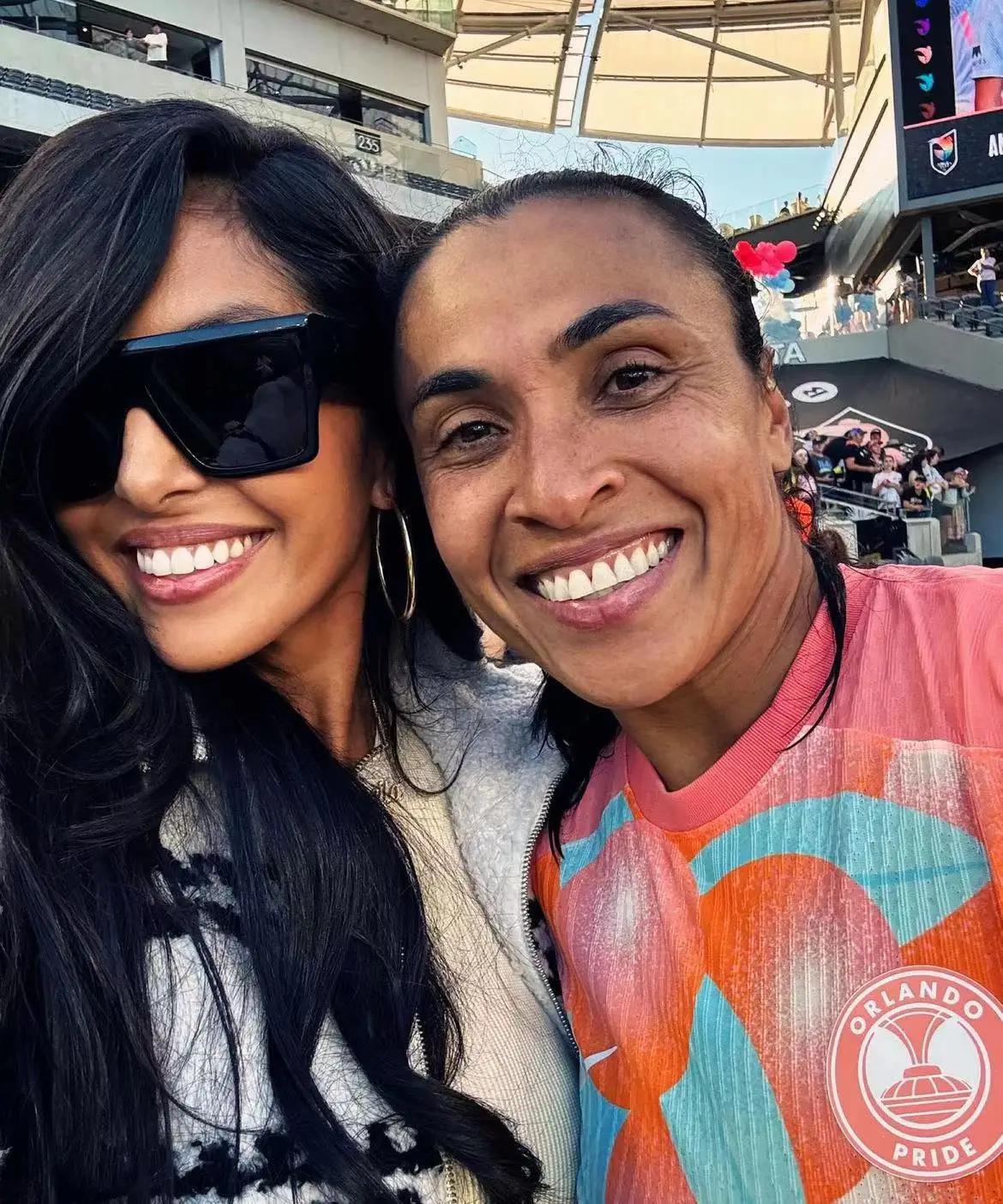 除了在车内自拍之外,瓦妮莎还带着女儿们前去观看女子足球赛,并且与巴西足球女将一起合影。