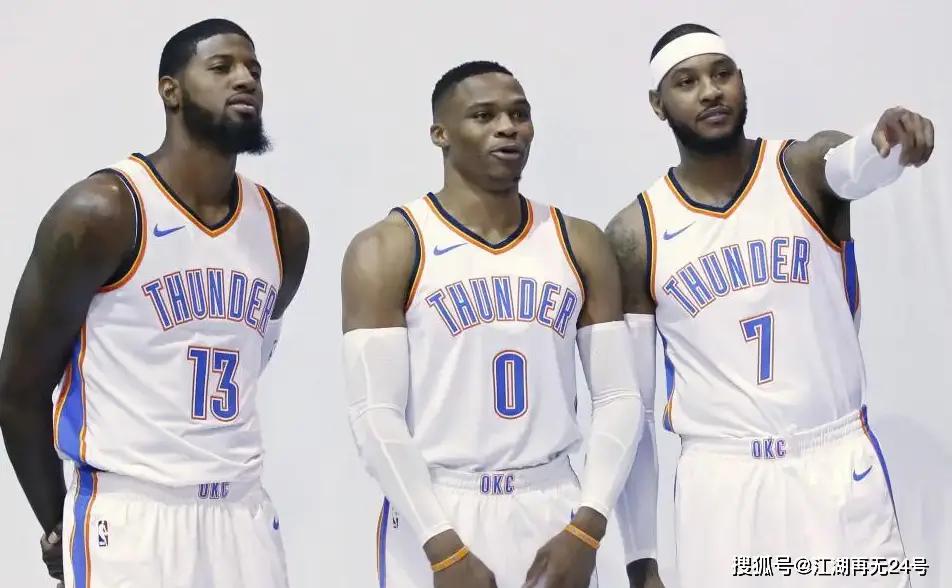 不过雷霆三巨头之间的化学反应明显也一般,尤其是安东尼的下滑完全超出了预期,他新赛季场均只有16.2分,投篮命中率仅有40.4%,他根本适应不了在威少、乔治身边打无球的定位。最终在三巨头的带领下,雷霆只比上赛季常规赛多了1个胜场。