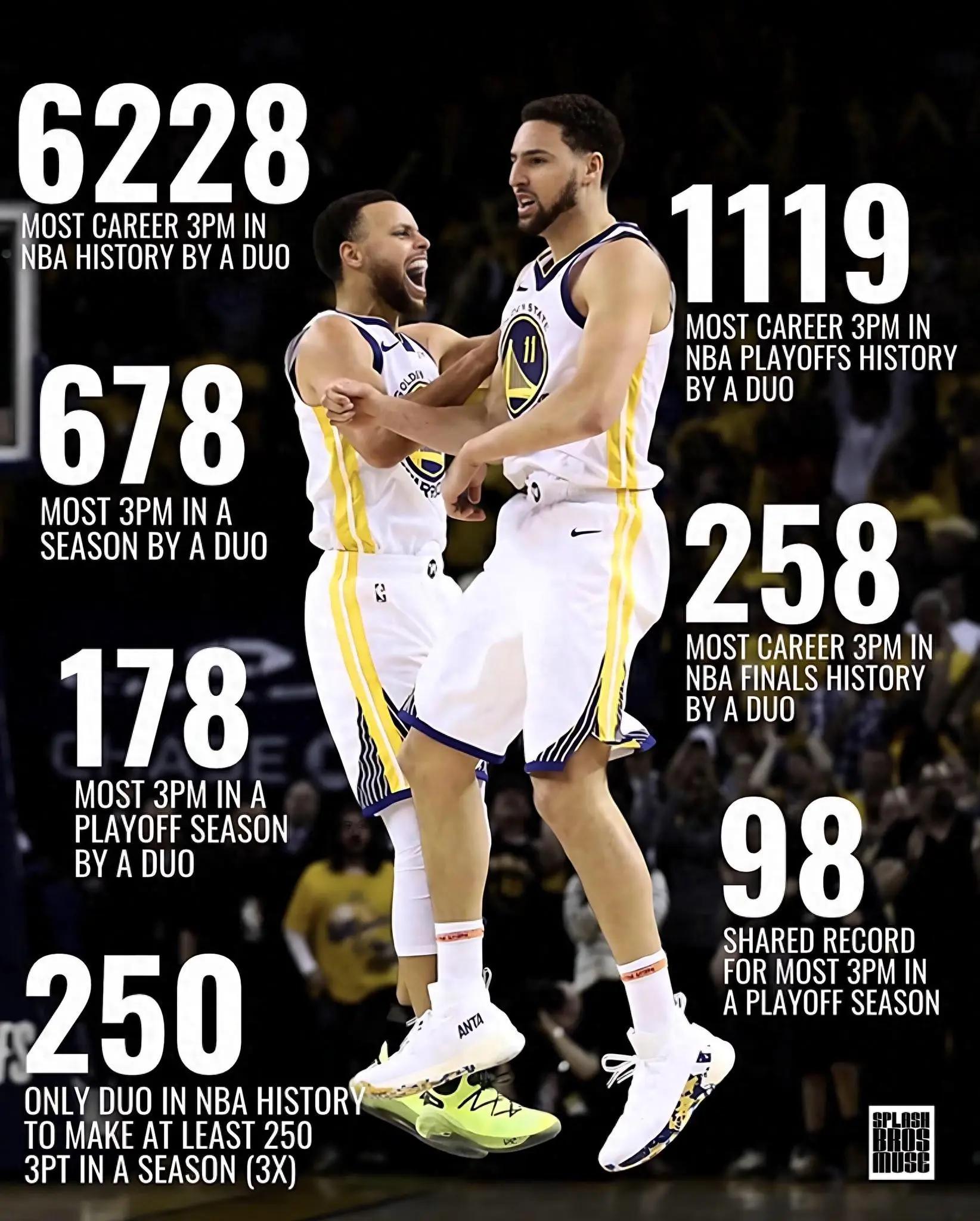 250-历史唯一一对单赛季同时命中250+三分的组合(且3次做到)