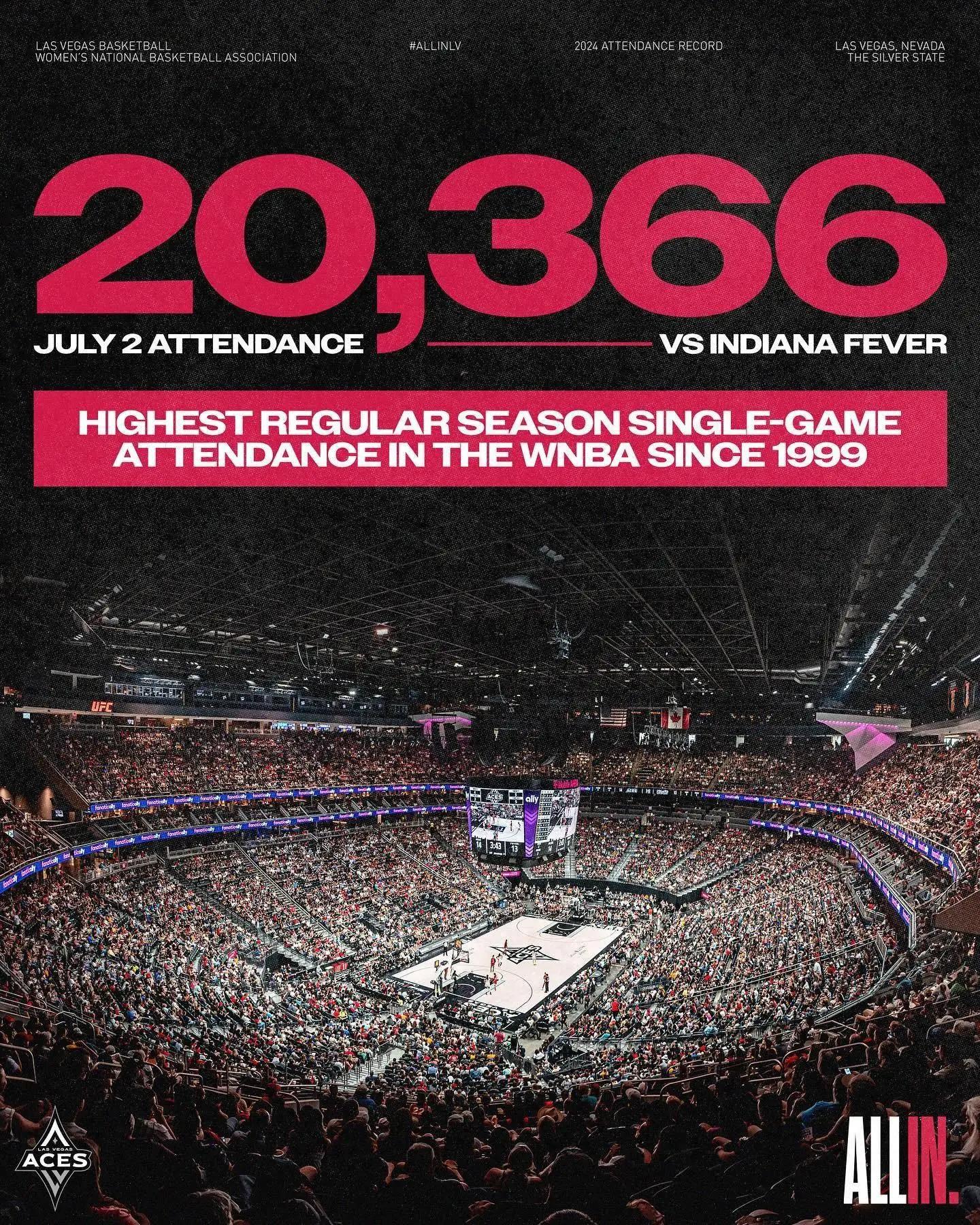 另外,本场也是2007年至今上座人数最高的任意WNBA比赛(常规赛/季后赛/总决赛)。而2007年水星vs震动的总决赛G5,现场22076人目前仍是任意WNBA比赛的上座人数纪录。