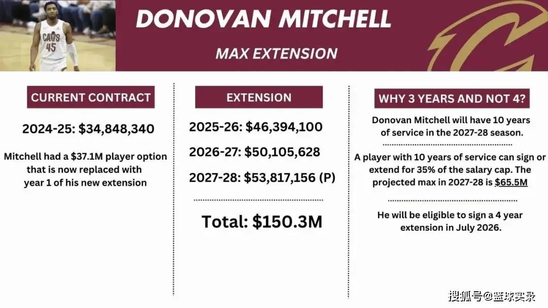 需要说的是,米切尔可以签下的最大续约合同其实是4年2.08亿,之所以选择2+1的三年合同,与利益最大化有很大关系。