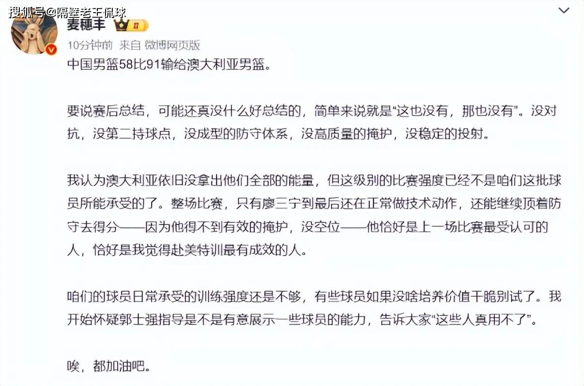 比赛打到最后,也只有廖三宁的体能跟得上,在场上也敢于做动作,不惧怕与澳大利亚这种身体级别做对抗,只是因为高位没有有效的挡拆和掩护,他无法得到大空位,每一次突破的消耗,只能作为无效的变招;此刻,场下的篮协主席姚明“眉头紧锁”,他内心很清楚,这样的中国男篮任重而道远。
