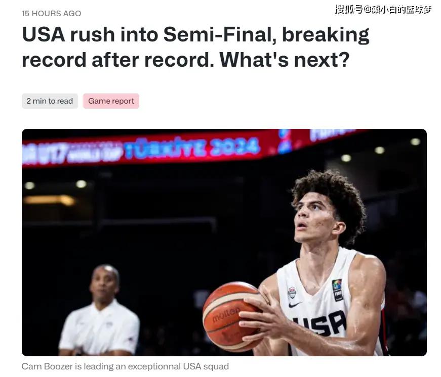 美国在半决赛的对手是新西兰男篮,新西兰的晋级之旅很有运气成分,先是打埃及、再打立陶宛,所以新西兰的硬实力并不强,美国赢他们大概率又是大胜,美国U17是毫无疑问的夺冠第一热门,美国队的天赋太强了。