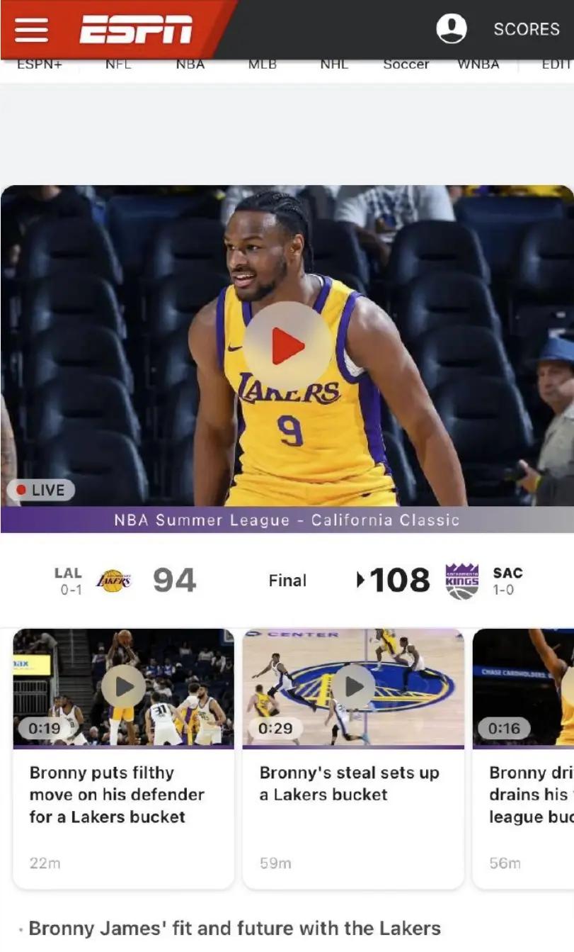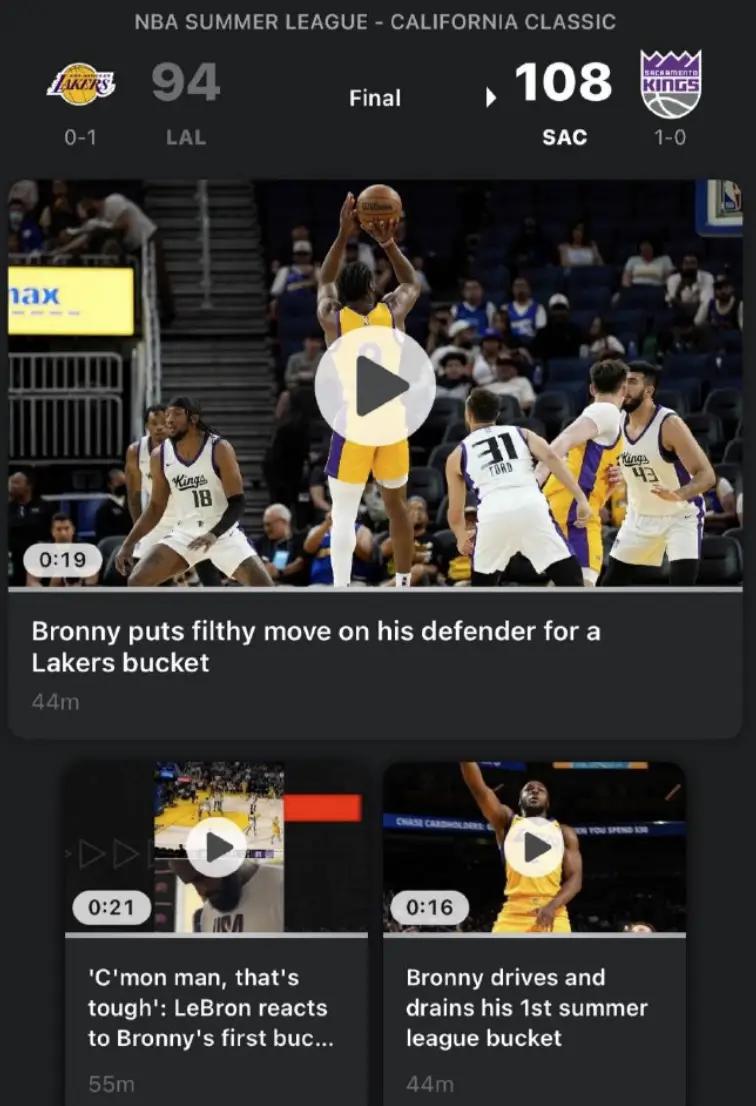 但是这就是影响力,美国媒体这么关注他,专门聚焦他,就这都要给他一个头版,甚至超越了其他的各种球队各种球星,包括什么库里杜兰特哈登之类的,就是因为他是詹姆斯的儿子。詹皇之子就是配这样的待遇,哪怕打得不好,他的赛后采访都有几十个美国媒体争相报道。下一场比赛打勇士,他的关注度也只会更高,这也是勒布朗带给他的詹皇效应和流量。